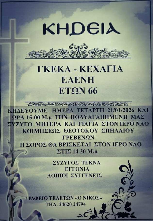 Κοινωνικά Έφυγε η Ελένη Γκέκα-Κεχαγιά admin Ιαν 20, 2026 0 Share on FacebookPost on XFollow usSave Post Views: 63