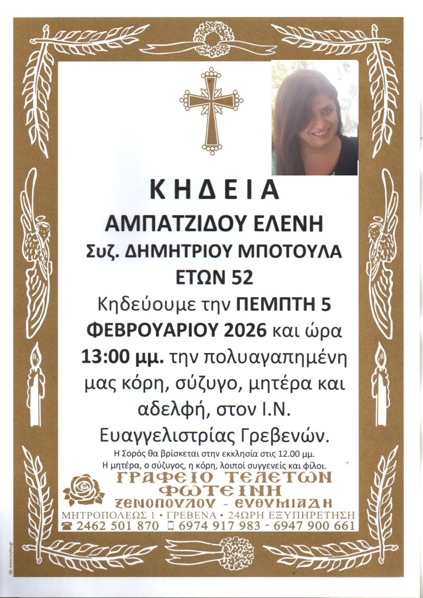 Κοινωνικά Έφυγε η Ελένη Αμπατζίδου στα 52 admin Φεβ 4, 2026 0 Share on FacebookPost on XFollow usSave Post Views: 114